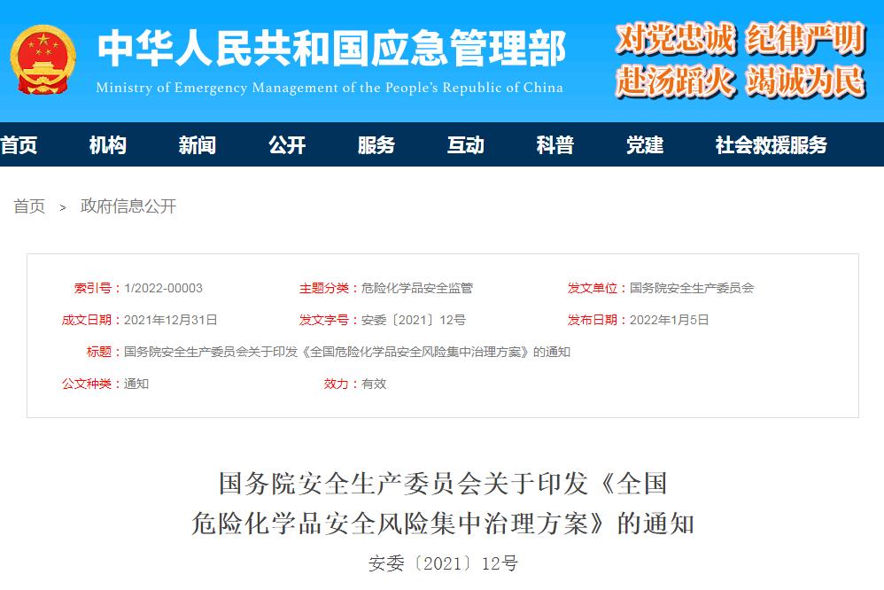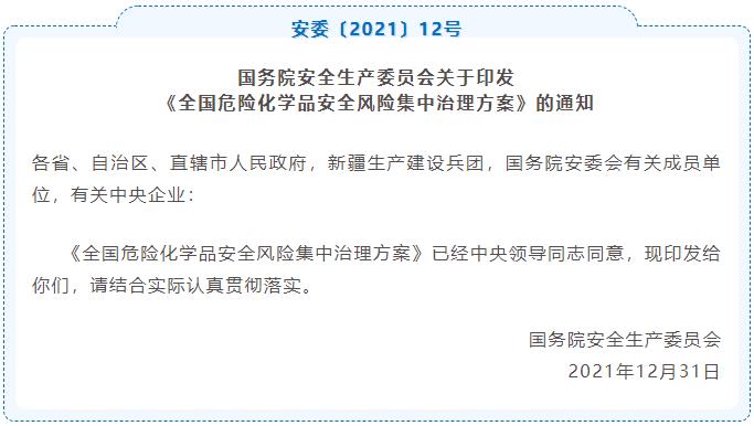 全國危險(xiǎn)化學(xué)品安全風(fēng)險(xiǎn)集中治理方案